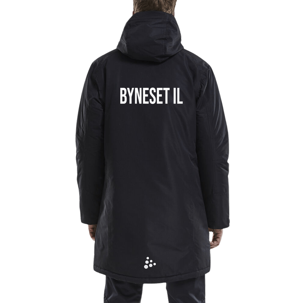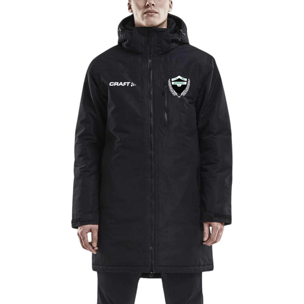 Vattert parkas i slitesterkt materiale som passer perfekt til oppvarming på kalde dager eller en varm jakke for spillerne på innbytterbenken og treneren og laglederne. Toveis glidelås i front , avtagbar hette, seks lommer og justerbar ermavslutning. Vannsøyle: 3000.